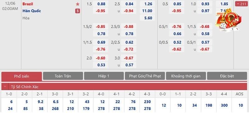 • Nếu Brazil hòa hoặc thua, người chơi sẽ mất toàn bộ số tiền cược ban đầu.